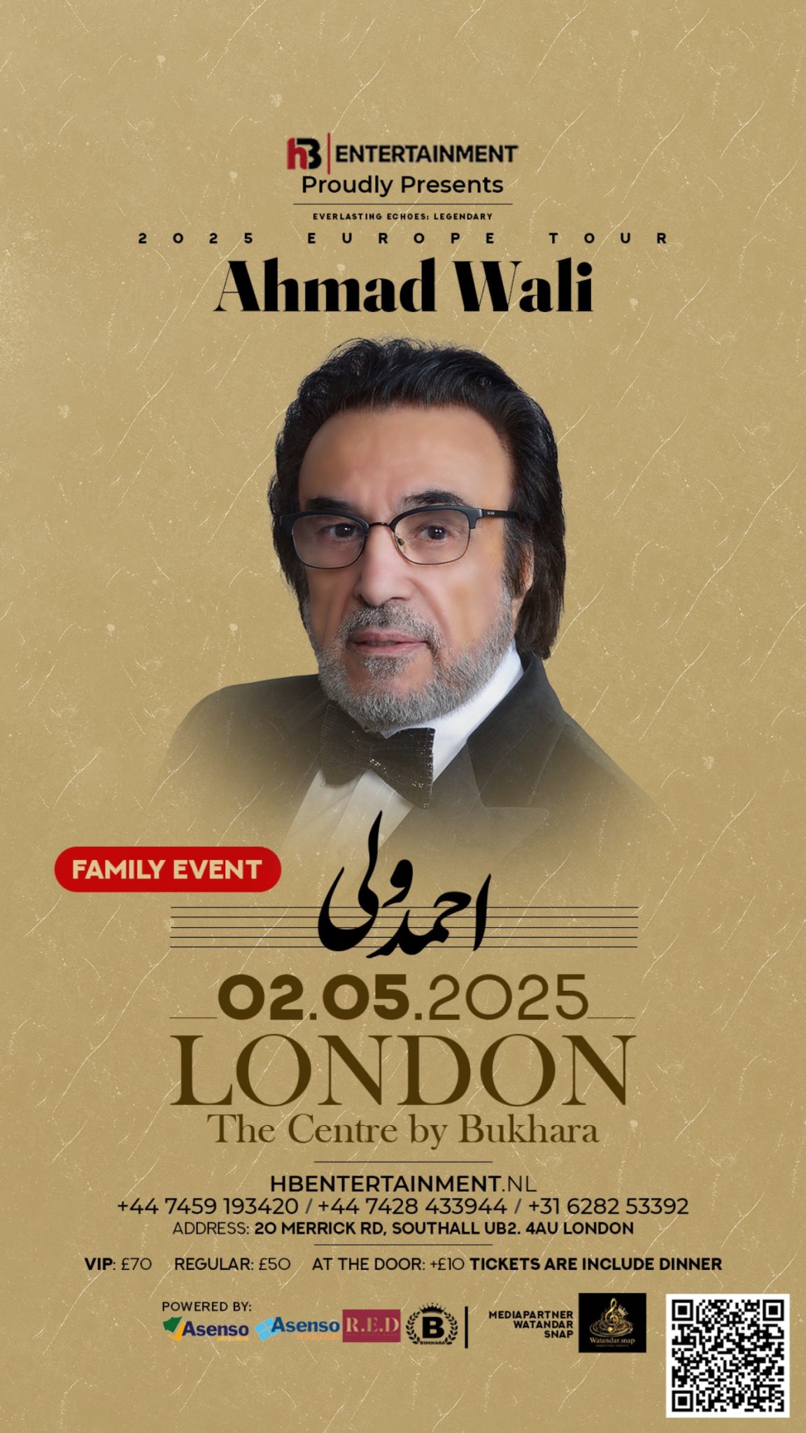 After a long absence, Ahmad Wali, one of the most iconic voices in the Afghan music industry, is finally returning to Europe for four exclusive concerts. With his impressive career and timeless music, he has captured the hearts of many.